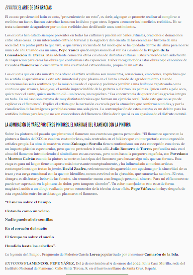 PEPE YÁÑEZ, EXVOTOS FLAMENCOS Scritto da Myriam Lafuente Soler on 06/11/2021. Postato in Cultura - ENLACE A ENTREVISTA EN AGENDA VIAGGI